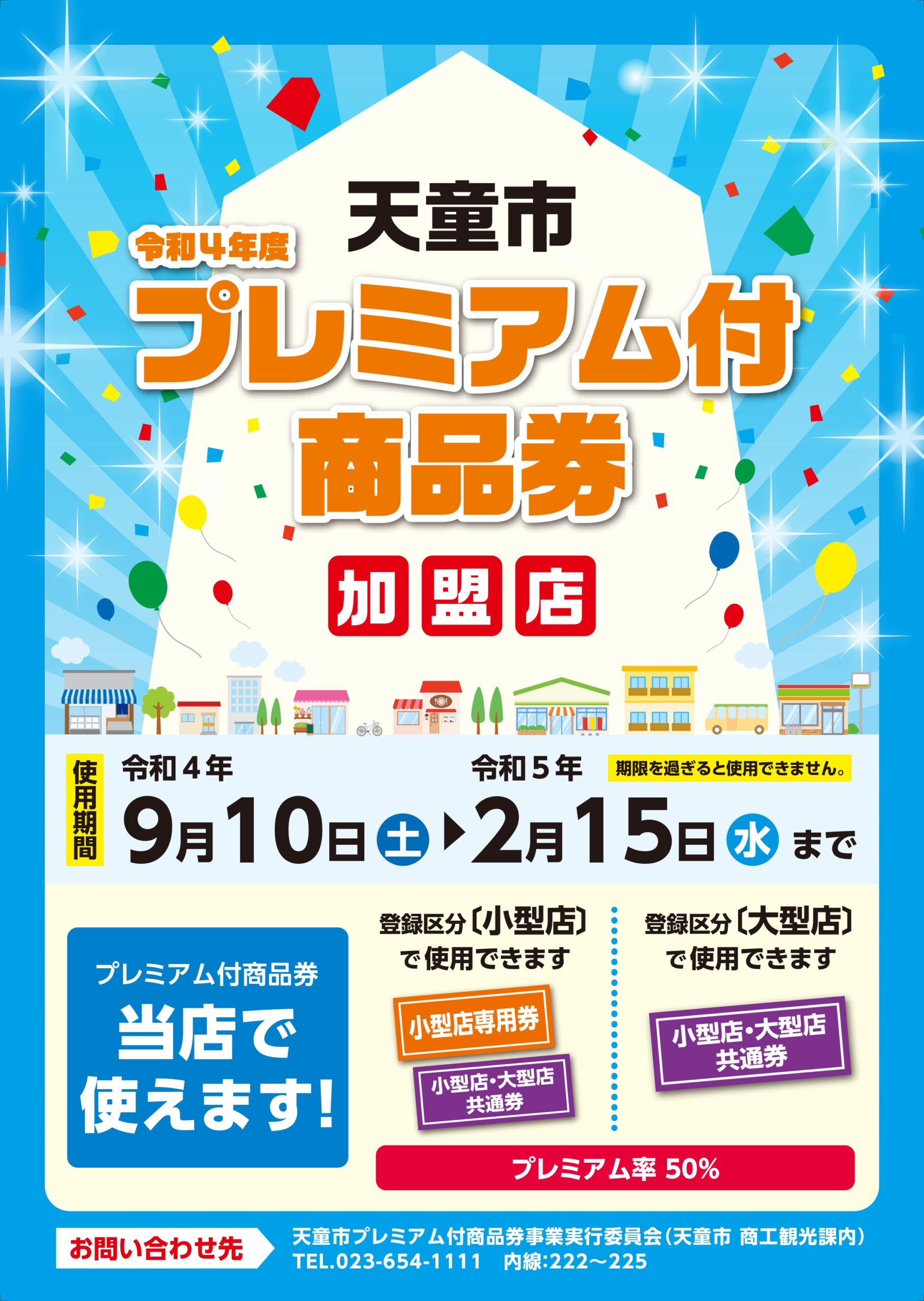 お知らせ天童市プレミアム付商品券使えます! 2022年9月12日 cyclesta 天童市のプレミアム付商品券が9月10日から発売開始となりました。 当店でもご利用いただけます! 当店では大型店用商品券、小型店用商品券どちらも使用が可能です。 天童市民の方限定にはなりますが、プレミアム率50%の超!お得な商品券になりますので、ぜひご利用くださいませ! Published by cyclesta cyclesta のすべての投稿を表示