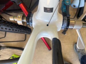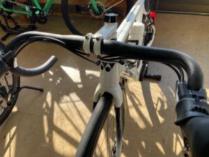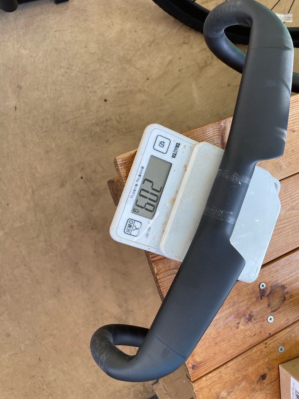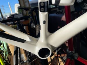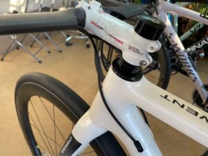 完成車に付属のハンドルは400mm幅のアルミですが、カーボンハンドルに変えたいのと、380mmに変えてみたいとのこと。