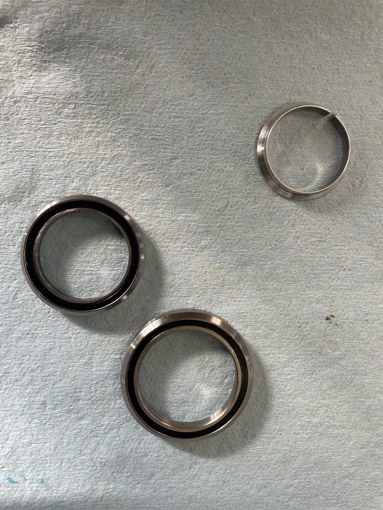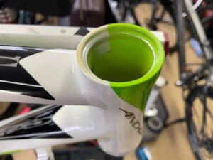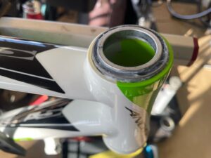 ステム、ヘッドベアリング、アウターストッパー、シートクランプに至るまで洗浄、古いグリスを除去し新しくグリスアップして組み付けます。