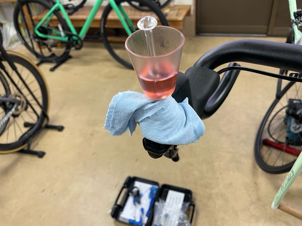 今のシマノの完成車用パーツはブレーキホース、レバー内にオイルが満たされており、ただ取り付けすればほぼ使用できるのですが、