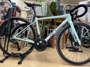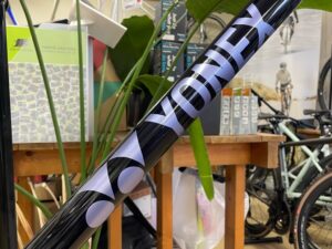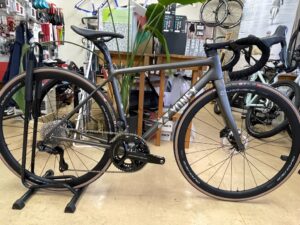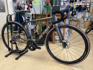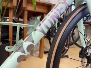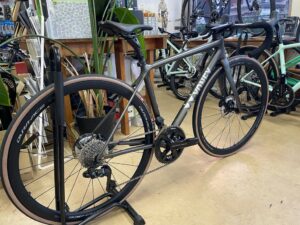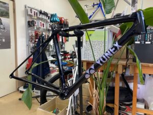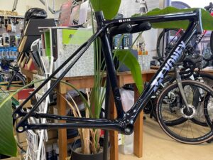 グラフィックでご紹介しておりましたが、このたび営業さんのご厚意で実車&フレームセットの実物をお持ちいただきました。