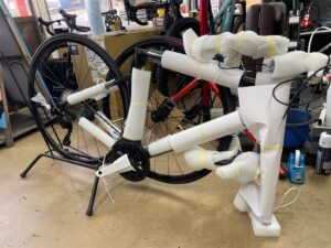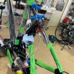 この状態を7部組といいシフトワイヤーなどはすでに通ったままですから、ハンドルやサドル、ホイールを取り付ければ完成となります。