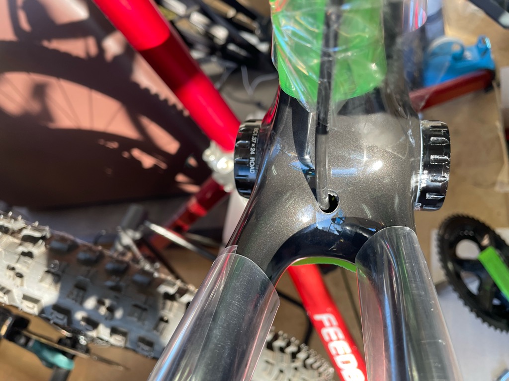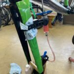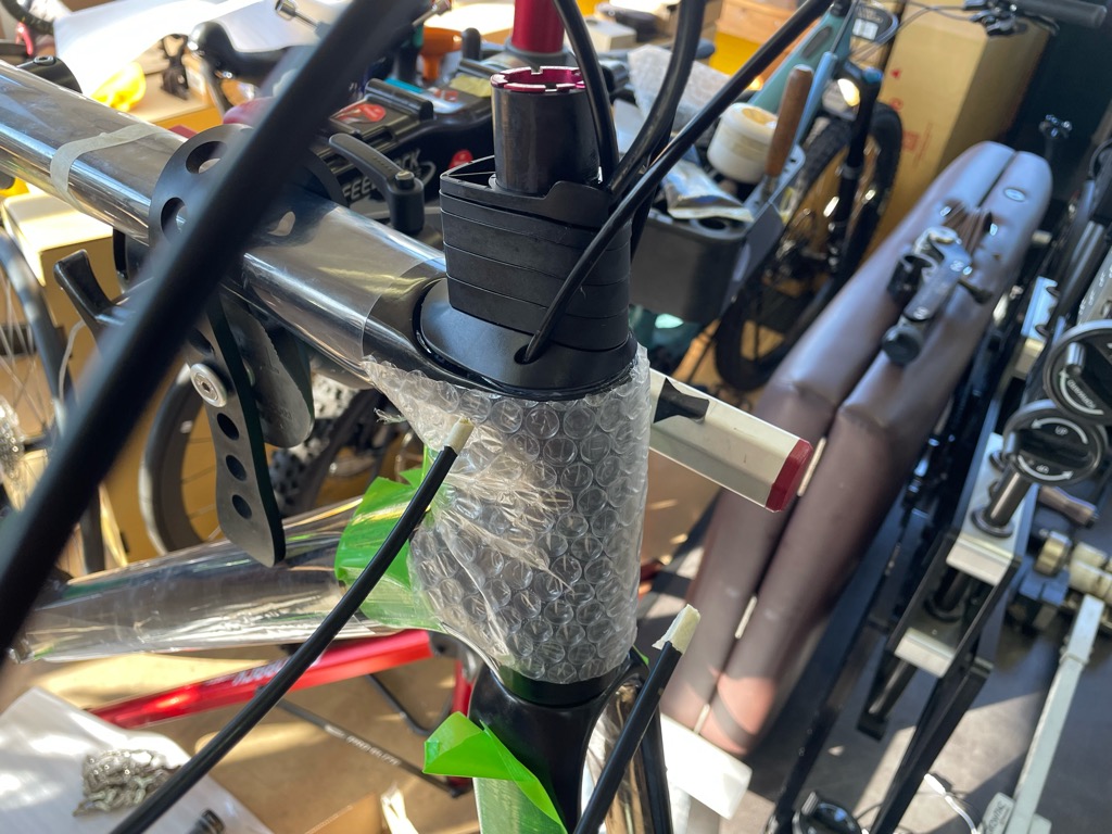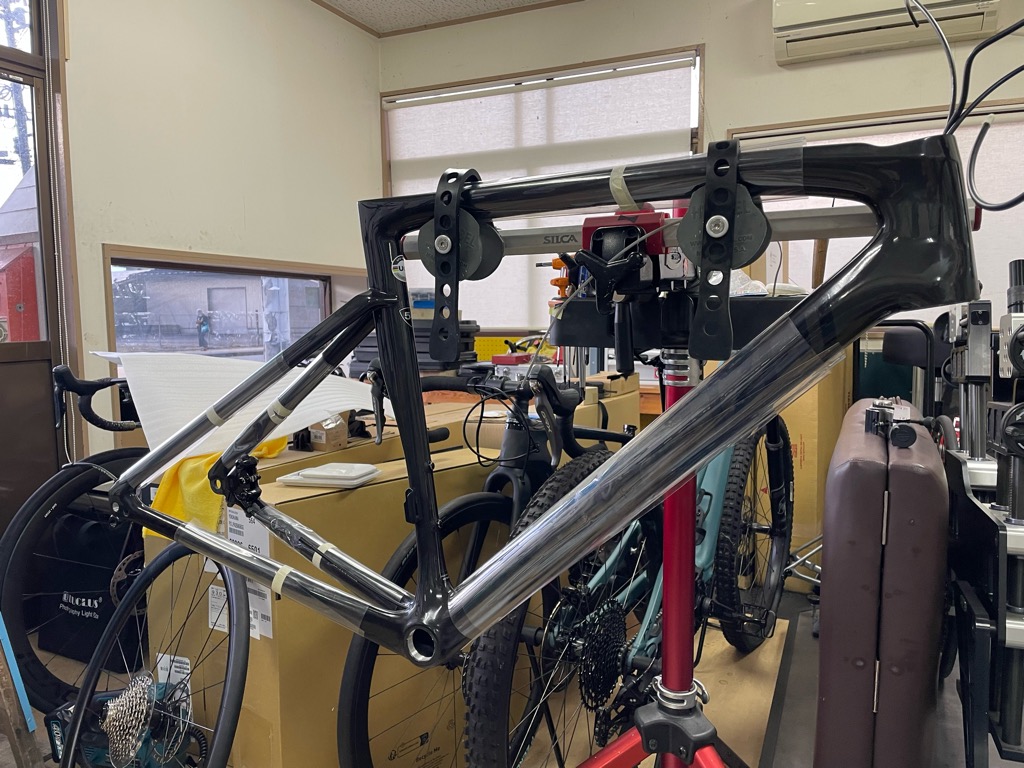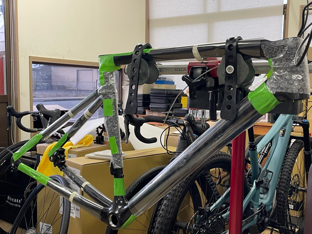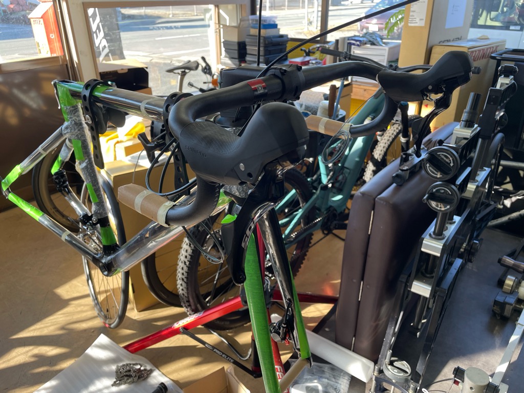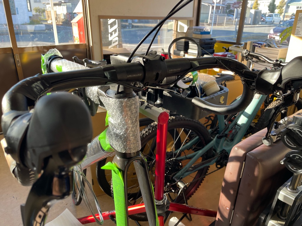 シートポストの取り付け、バーテープ等の作業です。