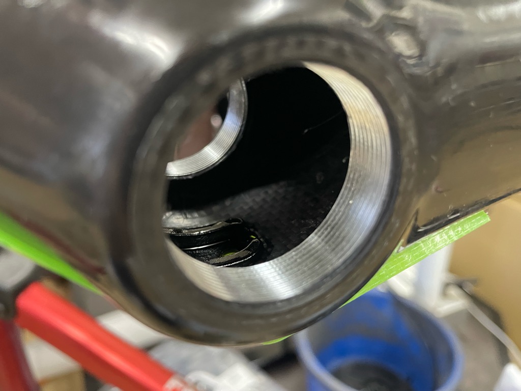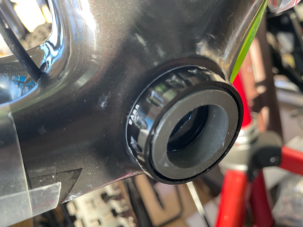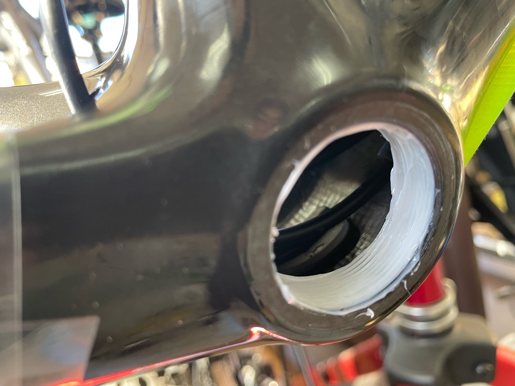 BBは元のグリスを洗浄し新たに高耐久のグリスをフレーム側BB側双方に塗布します。