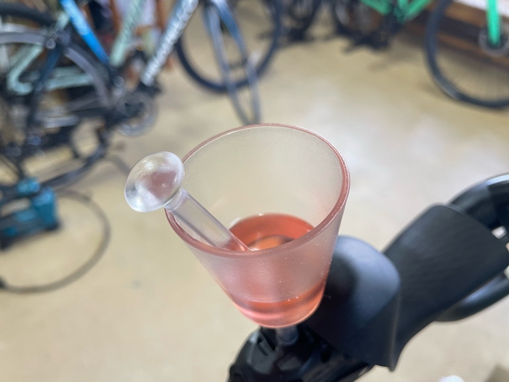 新品のパーツは内部にオイルがすでに満たされています。そのまま組んでも乗れるには乗れますが、取り付け時に入ってしまう気泡を除去し、