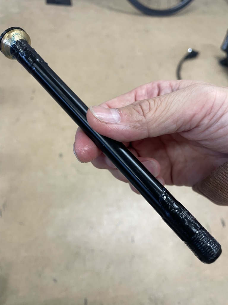 シートポストの押し子、スルーアクスル等の取り付けも適切なグリスで作業します。