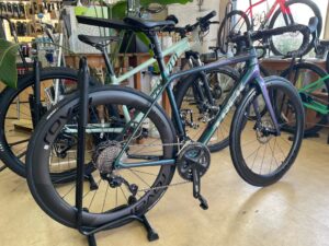 カンパニョーロZONDAをお使いでしたが、ご友人のカーボンホイールに乗ったところ衝撃を受けたとのことで、初めてのカーボンホイールにROVAL Rapide CLXⅡをご指名いただきました。