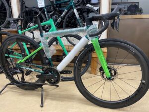 実はこのフレームセットは試乗車として運用すべく完成車として入荷したものですが、宮﨑店長がツール・ド・さくらんぼのサポートライダーで走ったのみ。