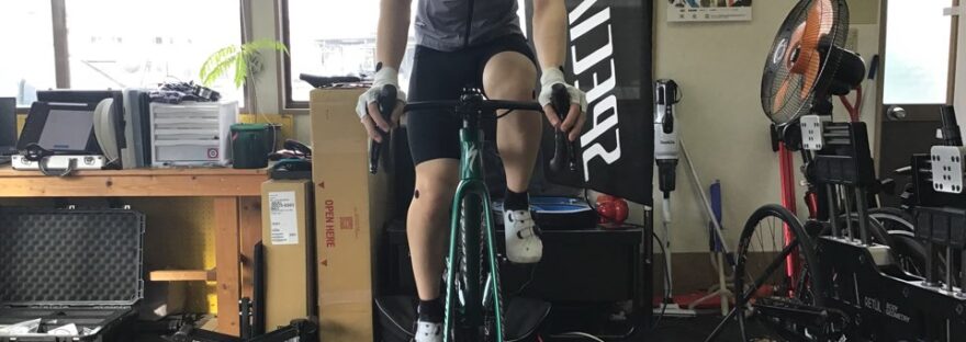 身体測定で身体の状態。脚長差や柔軟性、筋肉のつきかたを確認してからバイク上でのフィッティングに移ります。