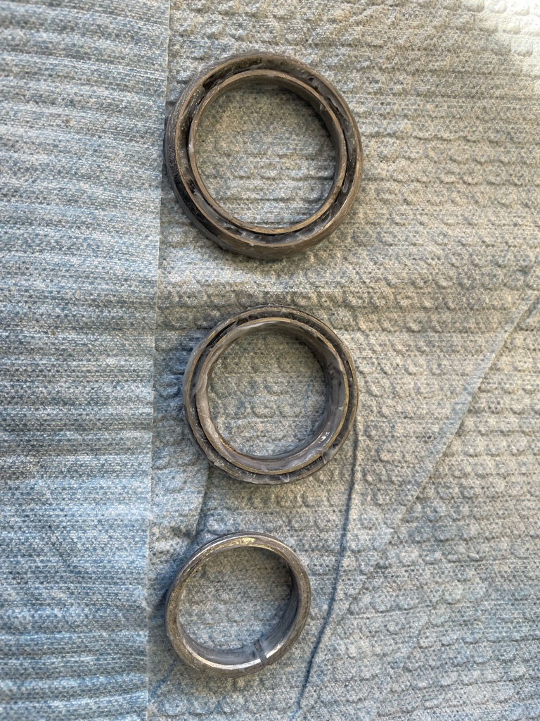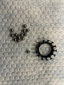 1年でここまで汚れたベアリング表面も洗浄してしまえばこのとおり。